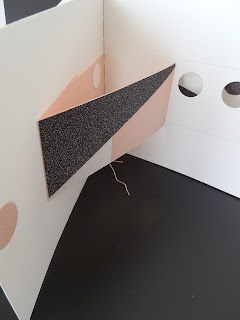 Duas versões. Uma a preto e branco, outra que, num fundo branco, agrega os tons cinza e rosa. Conjugação de mecanismo Pop Up com recortes.